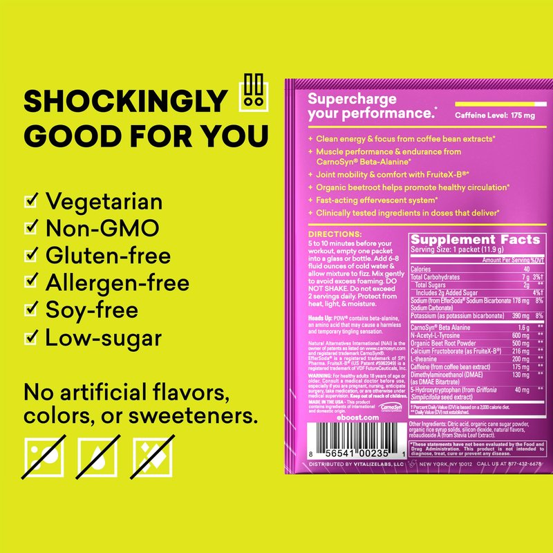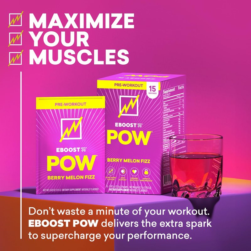 EBOOST POW Natural Pre Workout Powder –15 Packets - Berry Melon Fizz - A Pre Workout Supplement for Performance, Joint Mobility Support, Energy, Focus - Men & Women - Non-GMO, Gluten-Free, No Creatine