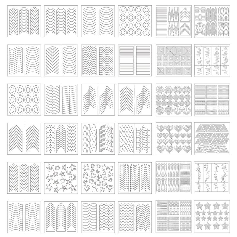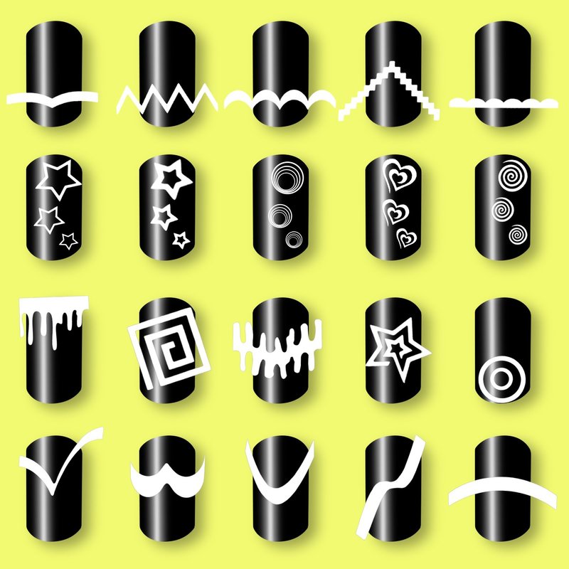 - A variety of patterns: french manicure guides come with 49 assorted designs such as zigzag, smooth waves, crisp lines, chevrons, heart, stars and others