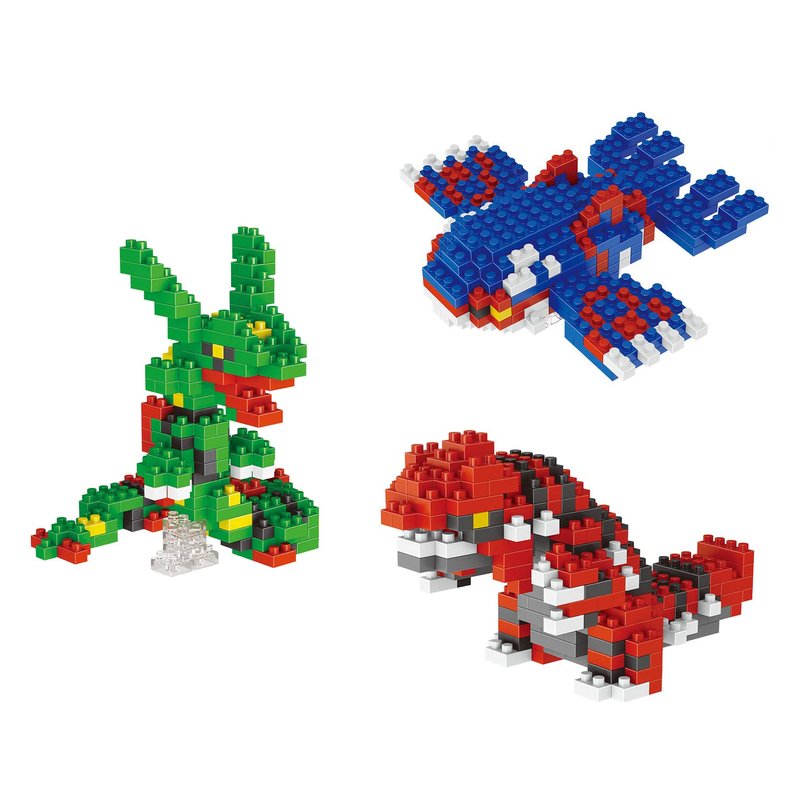 - Kyogre (221 block pieces), Rayquaza (202 block pieces), Groudon (231 block pieces)