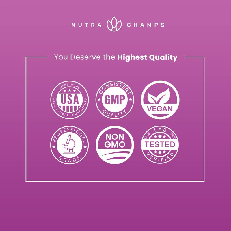 - cGMP USA Manufacturing - All NutraChamps supplements are manufactured in a state-of-the-art cGMP facility, and lab tested to guarantee that you receive the purest, safest and highest quality products on the market.