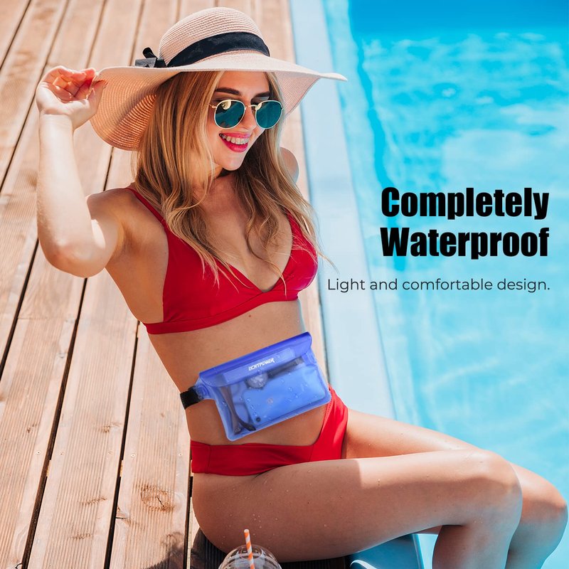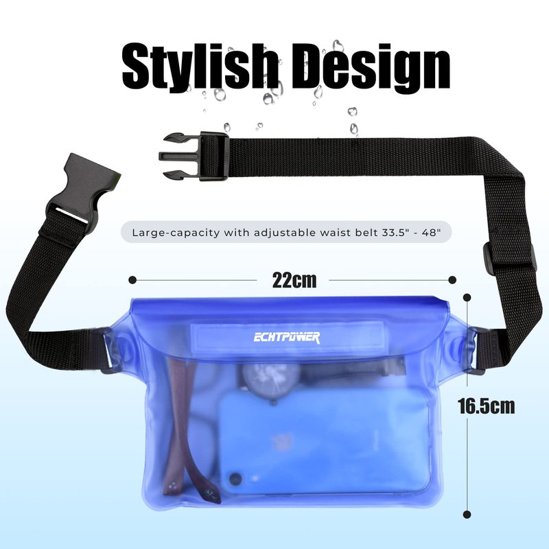 ECHTPower 2-Pack Waterproof Pouch Bag with Waist Strap, Waterproof Fanny Pack, Dry Bag with Adjustable Belt for Beach Bulk Swimming Kayaking Floating Boating Fishing Hiking Pool Water Park