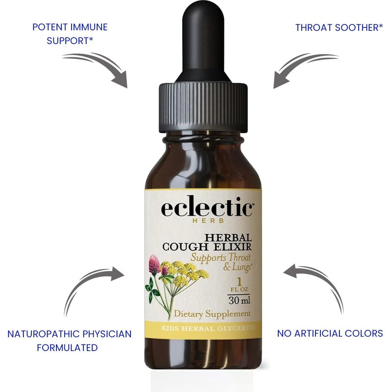 ECLECTIC INSTITUTE Kids, Herbal Cough Elixir, Black Cherry Flavored | Non-GMO, Gluten-Free | 1 fl oz (30 ml)