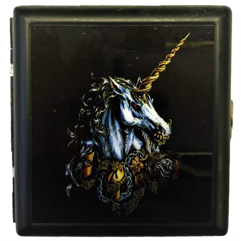 Eclipse Crushproof Metal Cigarette Case. Vibrant Unicorn Design. Holds King Size Cigarettes. Each Order Includes (1) Cigarette Case. Dimensions: 3.5" x 3.5" x 1"
