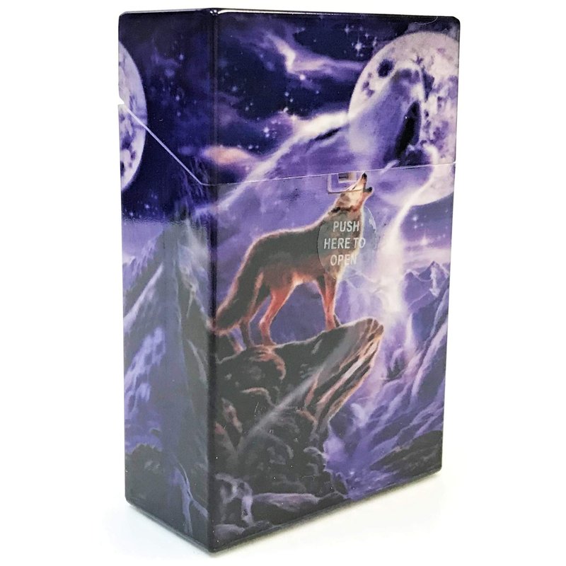 Eclipse Wolf Series Moon Howl Design Hard Plastic Crushproof Cigarette Case, 2ct, Kings, 3116D17-2