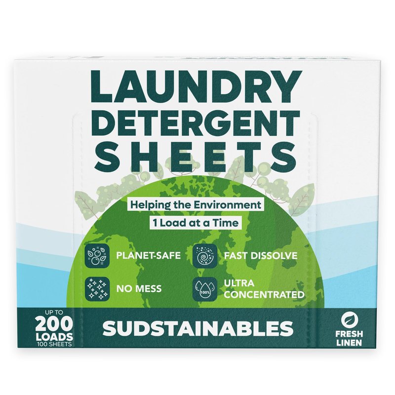 Eco Friendly Laundry Detergent Sheets (100 sheets 200 loads) - Plant based Free and Clear Strips for HE machine, travel, home clothes washing (Fresh Linen)