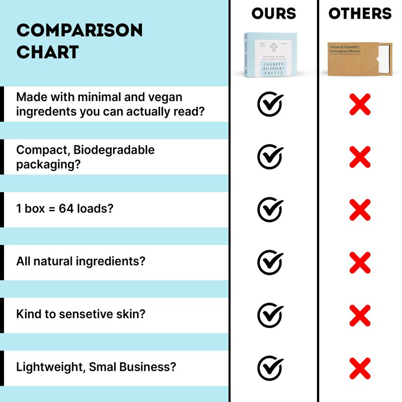 - A GAME-CHANGER: Our travel-ready, liquidless laundry sheets detergent simplify your laundry routine. Use a full sheet for heavily soiled loads or half a sheet for regular ones. Each sheet equals 2 loads, providing 64 loads per package!