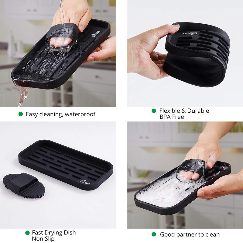- 1.ECOART Silicone Sponge Holder Tray is a multipurpose use organizer.It can gather the sponges, soap, soap dispenser, scrubber,towel and cups in the kitchen or bathroom, keep your house clean and tidy!