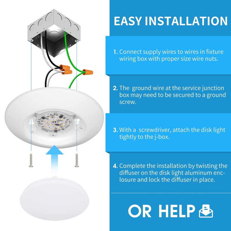 - ✅EASY INSTALLATION: Surface Mount LED Disc Light Provided with needed mounting hardware, can be installed into 4” Junction Box. Suitable for most new construction, remodeling, and shallow recessed lighting housings; Refer to install instructions for detailed steps.