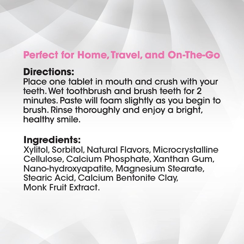- Each jar contains 90 generously sized toothpaste tablets made with all-natural ingredients. Made with calcium bentonite clay to help whiten your teeth naturally and natural flavor to freshen your breath. We also include Nano Hydroxyapatite and Xylitol as a dentist recommended ingredient..