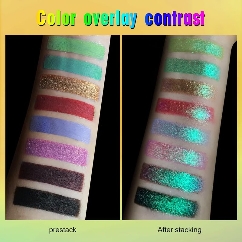 - Captivating Color Shifts: Immerse yourself in a mesmerizing display of clear metallic yellow, green, blue, purple, and silver hues that shift and transform with every angle, creating eye looks that are truly unique and captivating.