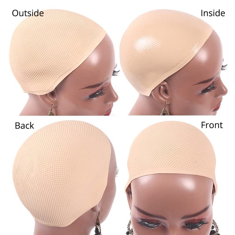 - => Color and Size: Beige, free size. Silicone Wig caps are stretchy that fit most Mannequin head size.