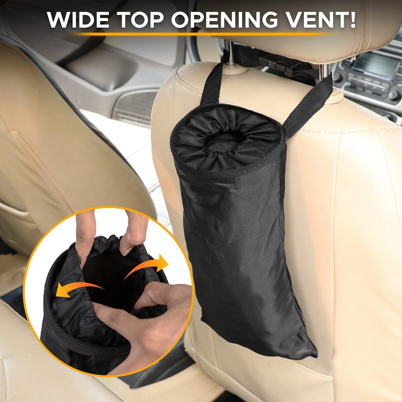 Quality Car Accessories: EcoNour Car Garbage Bag is made of premium fabric. It has an elastic opening for putting items in, a buckle belt that can be adjusted to fit comfortably, and a closure at the bottom. Convenient to Use: EcoNour Car Trash Bag hanging for car features an elastic top opening for convenient garbage dumping and an open bottom design for easy trash removal. Adjustable Straps to Hang It Anywhere: This vehicle trash can is easily installed on any car seat with its adjustable straps and can be hung from your armrest or headrest. Multiple Usage Car Organizer: This garbage can for cars is leak-proof, washable, and makes it easy to dispose of your garbage. It can be used in your office, home, camping, or on your road trip to dispose of the trash. Space-Saving Trash Bag: This collapsible car can trash bag can also be used as a storage bag. This lightweight product holds a large amount of stuff, but it is very compact. Just hang it in your car without occupying too much of your car space.