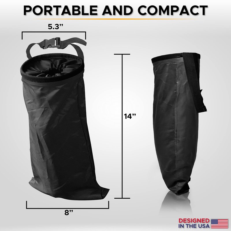 - Space-Saving Trash Bag: This collapsible car can trash bag can also be used as a storage bag. This lightweight product holds a large amount of stuff, but it is very compact. Just hang it in your car without occupying too much of your car space.