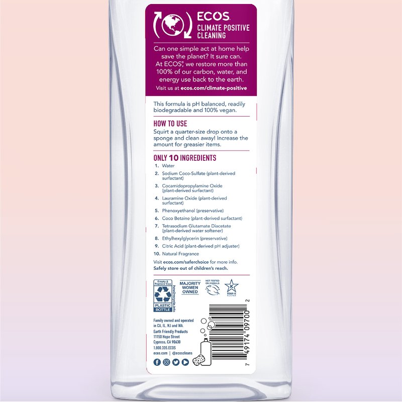 - Powerful Plant-Based Formula: ECOS Dishmate dishwashing liquid features a potent, plant-derived formula that effectively cuts through grease and grime without harsh chemicals.