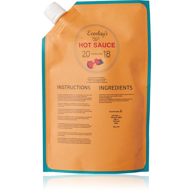 Revitalize your scalp with Ecoslay's Hot Sauce! This plant-based scalp treatment includes a blend of natural ingredients, such as sustainably sourced certified organic red palm oil, Jamaican black castor oil, biotin, and MSM, that work together to promote healthy hair growth and soothe dry, itchy scalps. The vitamin C in Hot Sauce helps to protect your scalp and hair from damaging free radicals, while the combination of rosemary essential oil and peppermint essential oil provides a refreshing and invigorating scent that will awaken your senses. Hot Sauce also contains rosemary oleoresin, a natural antioxidant that helps to keep the product fresh and effective. Ecoslay's Hot Sauce is sustainably sourced and is handmade in small batches. It's the perfect addition to your hair care routine, providing nourishment and hydration to your scalp and promoting healthy hair growth. In summary, if you're looking for a plant-based scalp treatment that contains a blend of natural ingredients, including sustainably sourced certified organic red palm oil, Jamaican black castor oil, biotin, and MSM, try Ecoslay's Hot Sauce Scalp Stimulator today! With its nourishing and stimulating formula, this scalp treatment will leave your scalp feeling refreshed and rejuvenated, and promote healthy hair growth. Directions: As a pre-poo: Massage into wet or dry hair, focusing on the scalp. Allow the goodness to marinate for 30 minutes before shampooing. As a hot oil treatment: Allow the bottle of Hot Sauce to sit in a container of hot water until warm. Apply to scalp, massage thoroughly, allowing Hot Sauce to marinate for 30 minutes before shampooing. *IMPORTANT NOTE* Hot Sauce gets its red color from carotenes like alpha-carotene, beta-carotene, and lycopene, which are the same nutrients that give tomatoes and carrots their rich colors. Please protect clothing and linens accordingly.