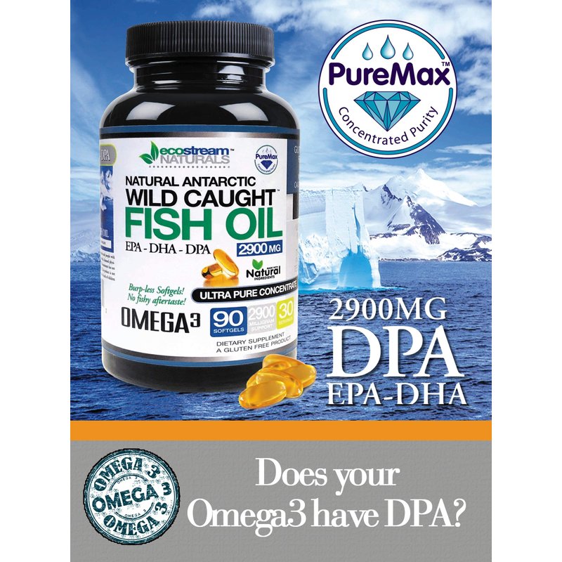 Natural Wild Caught Omega 3 2900 EPA-DHA-DPA with 2,900mg's of Natural Wild Caught Antarctic Fish Oil (EPA 1050mg DHA 708mg DPA 135mg) Highest amount available! The benefits of taking Omega3 fish oil are well documented.