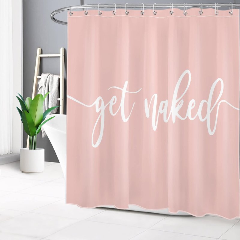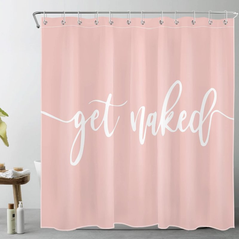 ECOTOB Get Naked Shower Curtain Decor, Cute White Art Font Words Get Naked on Pink Background Funny Quotes Shower Curtains 72X72 inch Polyester Fabric Bathroom Decor Bath Curtains Hooks Included