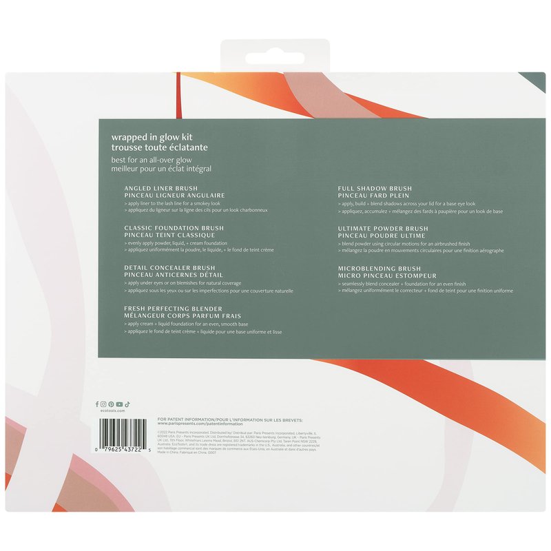 - Wrapped In Glow Makeup Brush & Sponge Set includes: (1) angled liner, (1) classic foundation brush, (1) detail concealer brush, (1) fresh perfecting blender, (1) full shadow brush, (1) ultimate powder brush, and (1) microblending brush