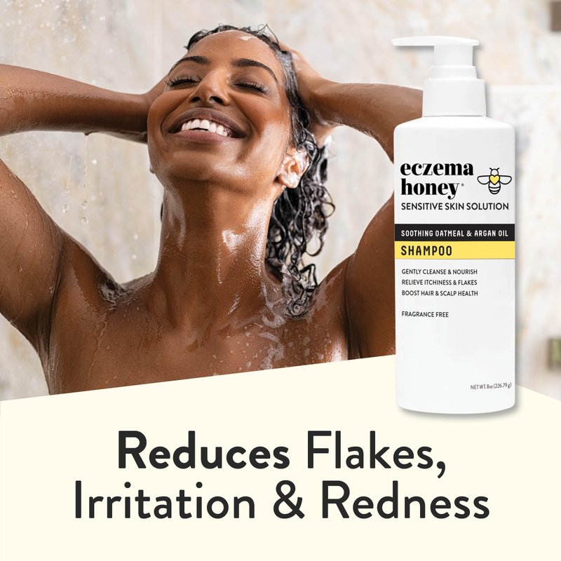 - Calms Irritated & Dry Scalp - Our Eczema Honey Nourishing Shampoo, infused with Honey and Oat Seed Extract, soothes and reduces redness, making it the ideal eczema shampoo for sensitive skin