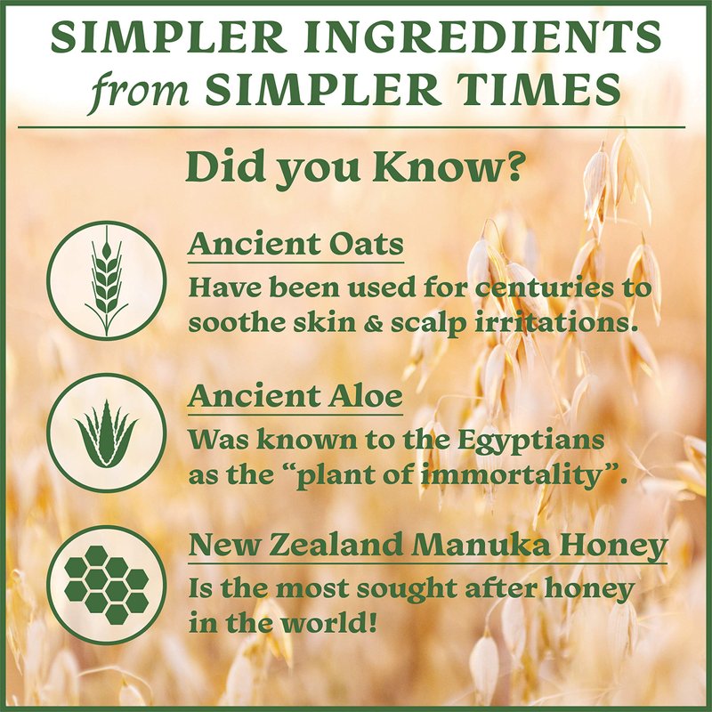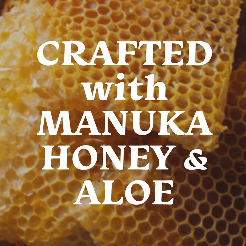 - Ingredients including Aloe Vera, Manuka Honey, Oat, Cehami Plant Extract, Orange Oil