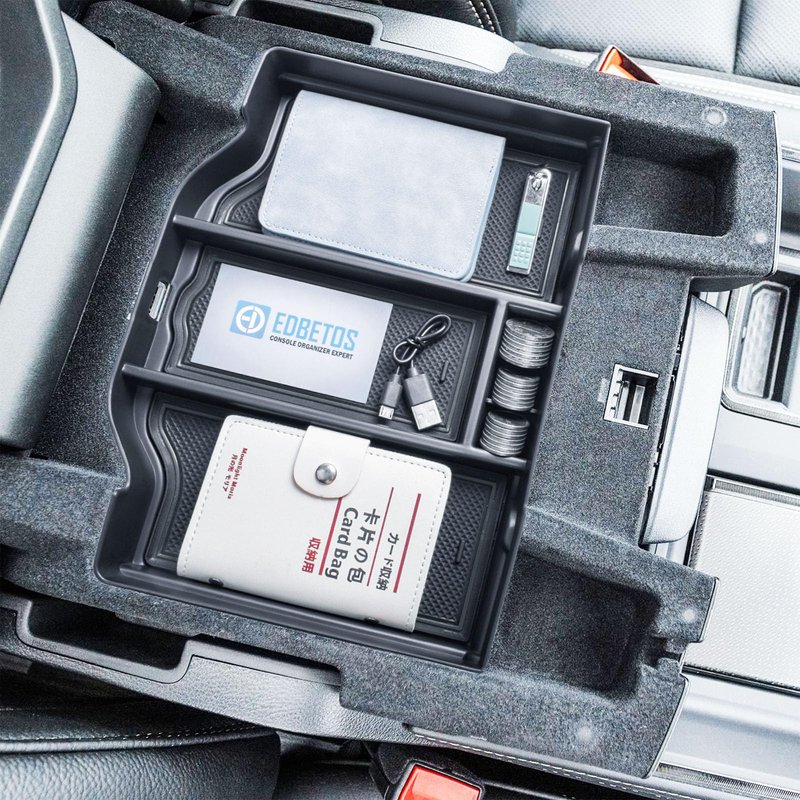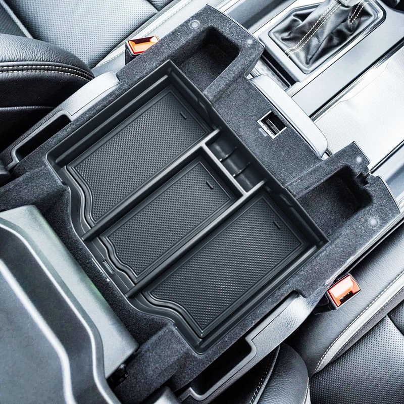 Fits for 2019-2023 2024 RAM 1500 2500 3500 Standard Cab, Quad Cab, Crew Cab, Mega Cab. Fits for the full center console and bucket seats. NOT FIT FOR 40/20/40 Split Bench Seat. Divide the center console into different departments to organize items, the insert dividers are high enough to almost touch the top of the console cover so that keep things in place .stuff doesn't get shifted around. Designed according to the original size, leave a reserved charging port. Maximize the storage in your vehicle center console, and keep your armrest storage in a more organized shape.No tools or adhesives are required, easy to take in and out in seconds.