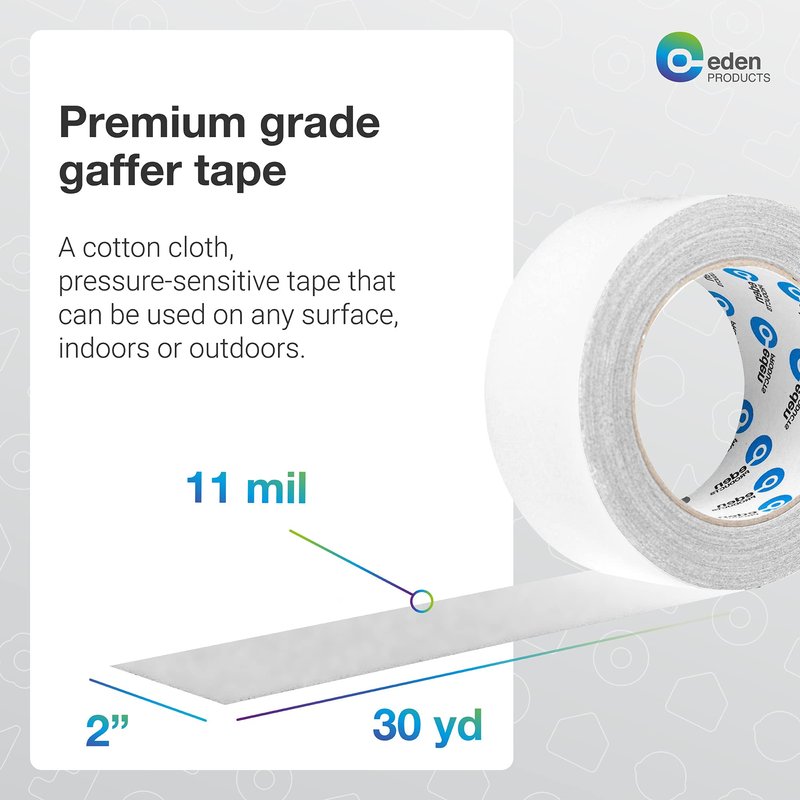 - PREMIUM QUALITY – Most Reliable, Thickest, Stickiest, Strongest on the market. EdenProducts gives you a perfect REAL industrial standard gaffer tape for your needs. Our gaffer tape is lab tested and proven to possess the best specifications and performance on the market to ensure customer satisfaction, with an amazing 82oz/Inch Adhesion to steel, 54lb/Inch Tensile strength, 11 Mil Thickness and a heat resistance of 50-200F.