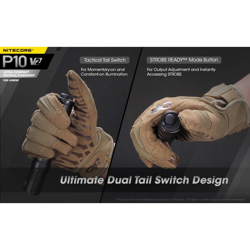 Designed for military, tactical, and hunting uses, the P10 v2 comes with a dual-switch tailcap for one-handed operation with direct access to strobe. The light can be further customized with three operating modes: tactical mode, law enforcement mode, and daily mode for different usage scenarios.