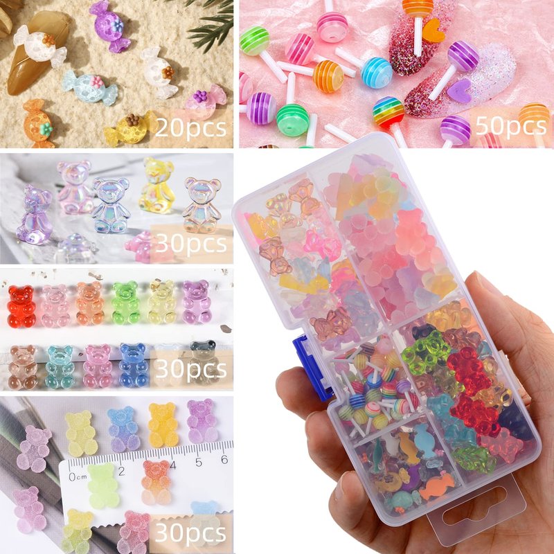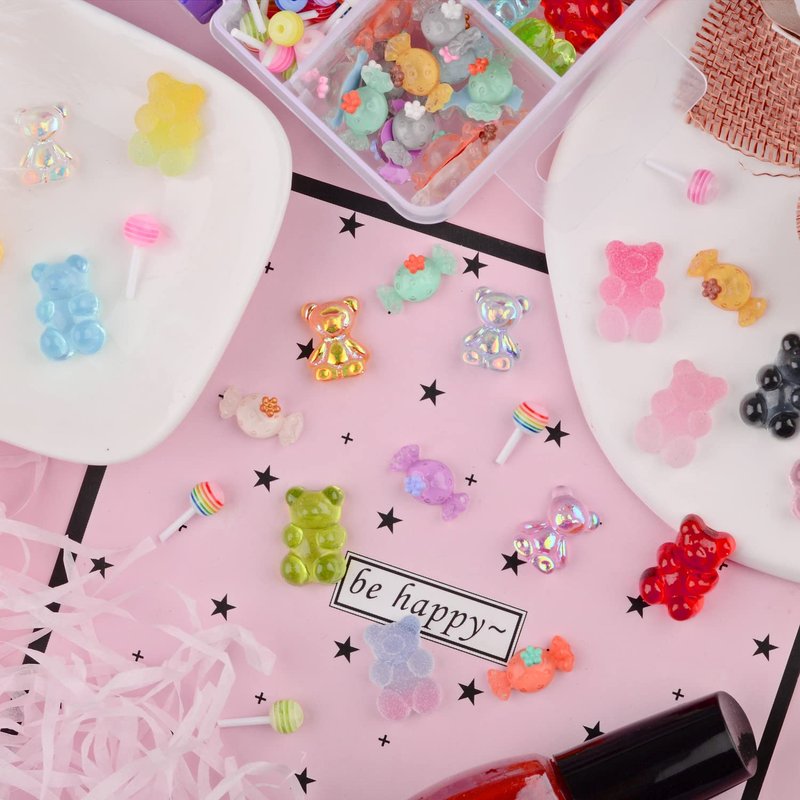 - Kawaii Nail Charms: You will receive 160 pcs 3D candy nail art charms. The flatback design of nail charms is convenient for you to use, you only need to apply some glue on it, then stick it to your nails or other objects.