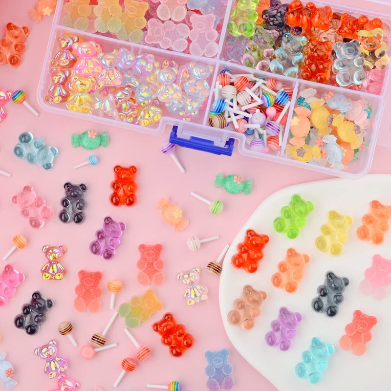 editTime 160PCS Kawaii Colorful Resin Acrylic 3D Bear Nail Art Charms for Nail DIY Crafting Scrapbook Accessories (Multicolor4)