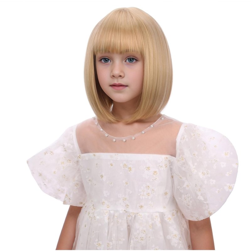 Edivd Kids Mixed Blonde Bob Wig Girls Short Blonde Bob Wig with Bangs Heat Resistant Synthetic Wig with Wig Cap