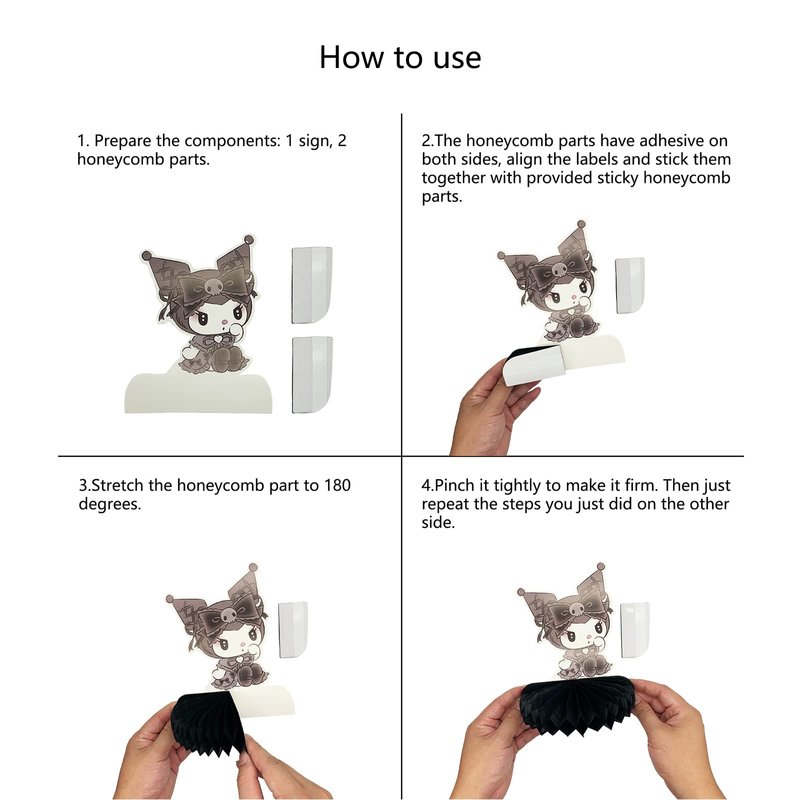 - Easy to assemble: Each sign requires 2 honeycombs parts. Two 180° honeycombs parts are attached to the decoration. The honeycomb parts have adhesive on both sides, align the labels and stick them together with provided sticky honeycomb parts.