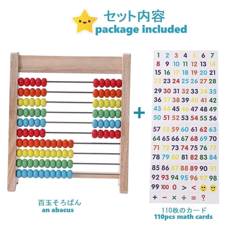- UPGRADED ABACUS SET- Our abacus counting toys set comes with an rainbow abacus and 110pcs math cards. The wood abacus has 10 stainless wires with 10 colorful wood beads on each lines. The square math cards is made of card paper.