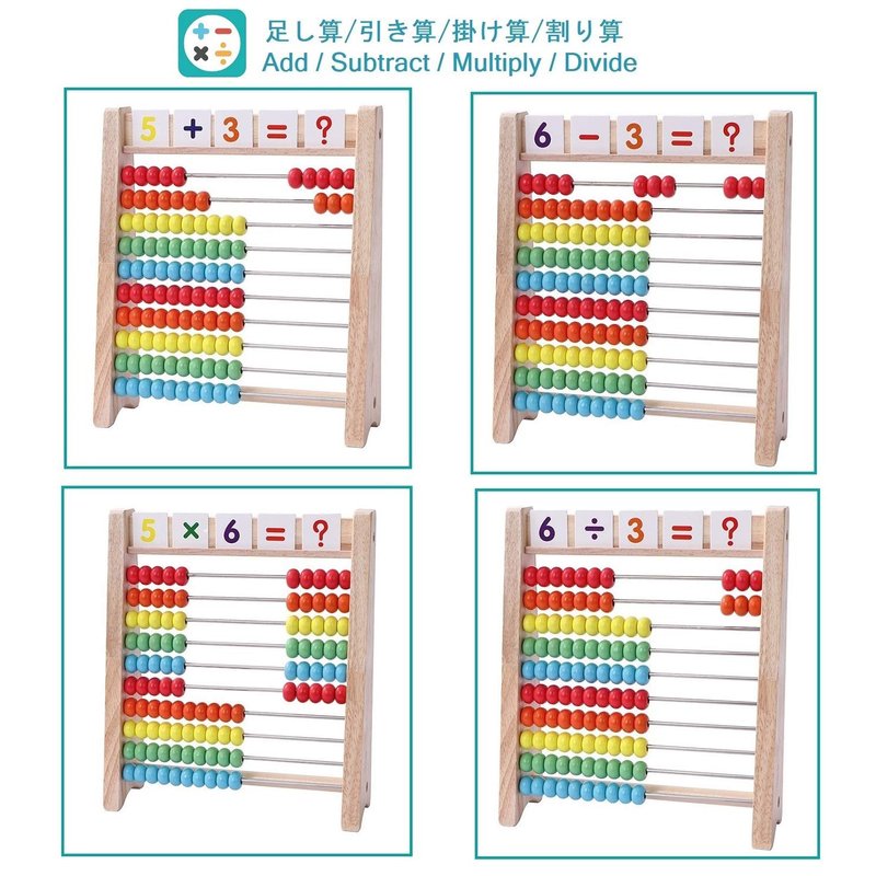 - SAFE MATERIAL - Non-toxic and tasteless kids education wooden math toys. Each part of the material is rounded and polished, soft and delicate.The math abacus smart design and bright colors makes learning more stimulating, fun and enjoyable.