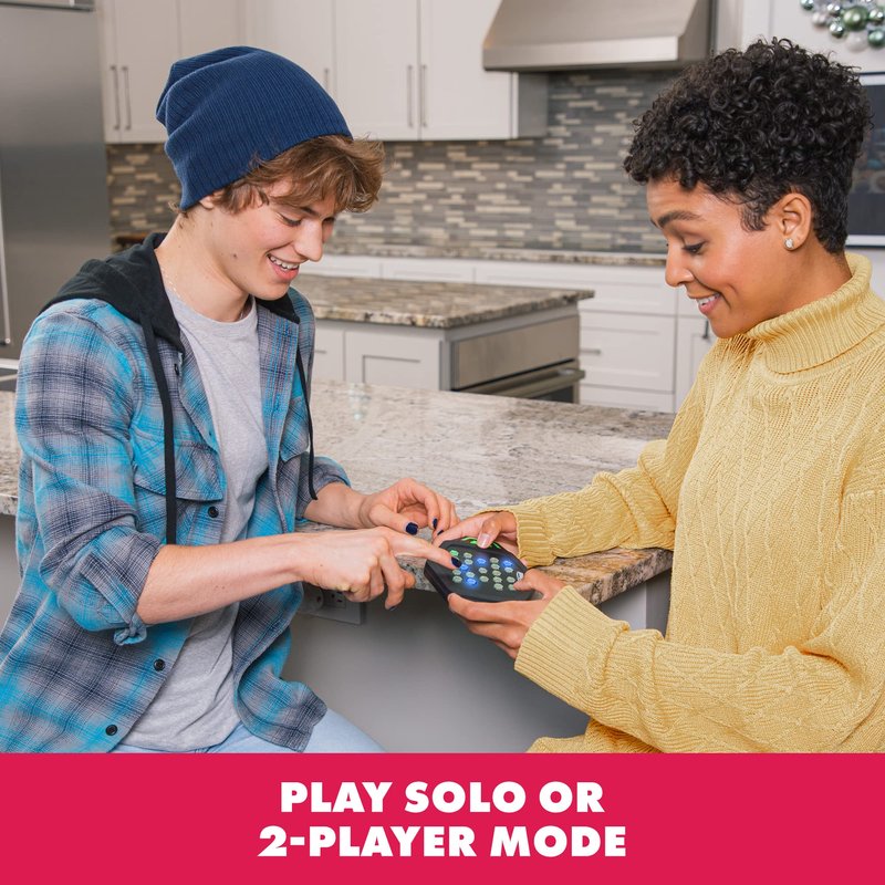 - HOW TO PLAY: Challenge yourself with 5 new Genius game modes (solo and two-player options)! Watch the sequence of lights and repeat it by pressing the buttons to win. Includes handheld electronic game with 21 tri-color LED buttons, five all new game modes, and both solo and two-player modes (requires 3 AAA batteries—not included)