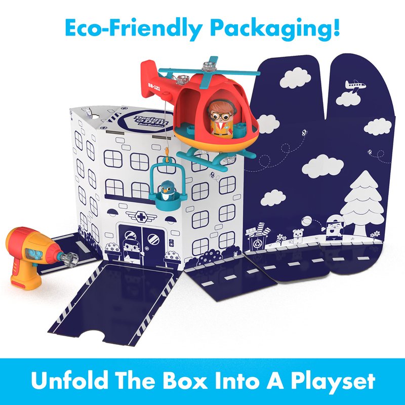 - ECO-FRIENDLY PACKAGING! Don't throw the box away, it's part of the play! Bolt Buddies packages unfold to become fun play sets, one simple step toward being sustainable and eco-friendly