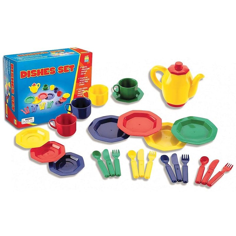- KITCHEN PLAY SET - Our 25 piece dish set helps children learn a variety of skills, from sharing to table manners and vocabulary development