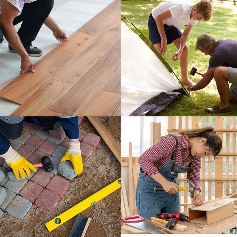 - Durable rubber mallet hammer head for soft blow strike that doesn’t damage