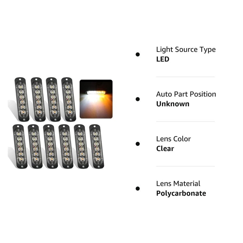 EEEKit 10 Pack LED Emergency Strobe Lights, Amber White 6 LED Strobe Warning Emergency Flashing Light Caution Construction Hazard Light Bar for Car Truck Van Off-road Vehicle ATV SUV Surface Mount