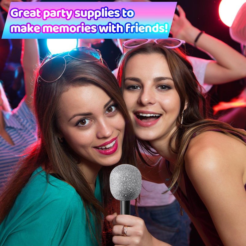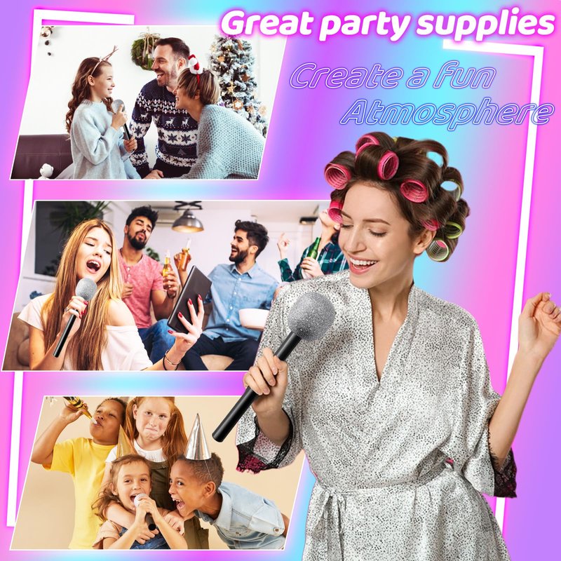 - Widely Used:These fake bling prop microphones can be widely used for birthday parties,retro themes,rock and roll styling,family gatherings,costume parties,cosplay parties,stage performances,classroom activities,weddings,masquerades and other celebrations to create a fun atmosphere