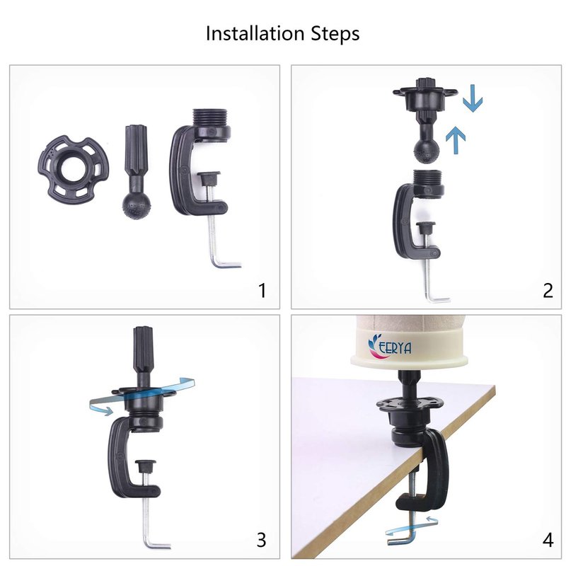 Eerya High Quality Mannequin Head Stand Sturdy Build Quality, Clamp Stands Designed for hair experts or salon, The clamp is strong enough. Easy To Use: It came unassembled but there are only 3 parts. The assembly was vey easy. Travel Size: Can easily be assembled and disassembled for easy storage and travel Application: Very Easy and Convenient to Use, Great for Wig Making, Fixing Wig Making, Styling, Display or any hat display mannequin head stand Note: Please do not use it on round or tiptilted surface