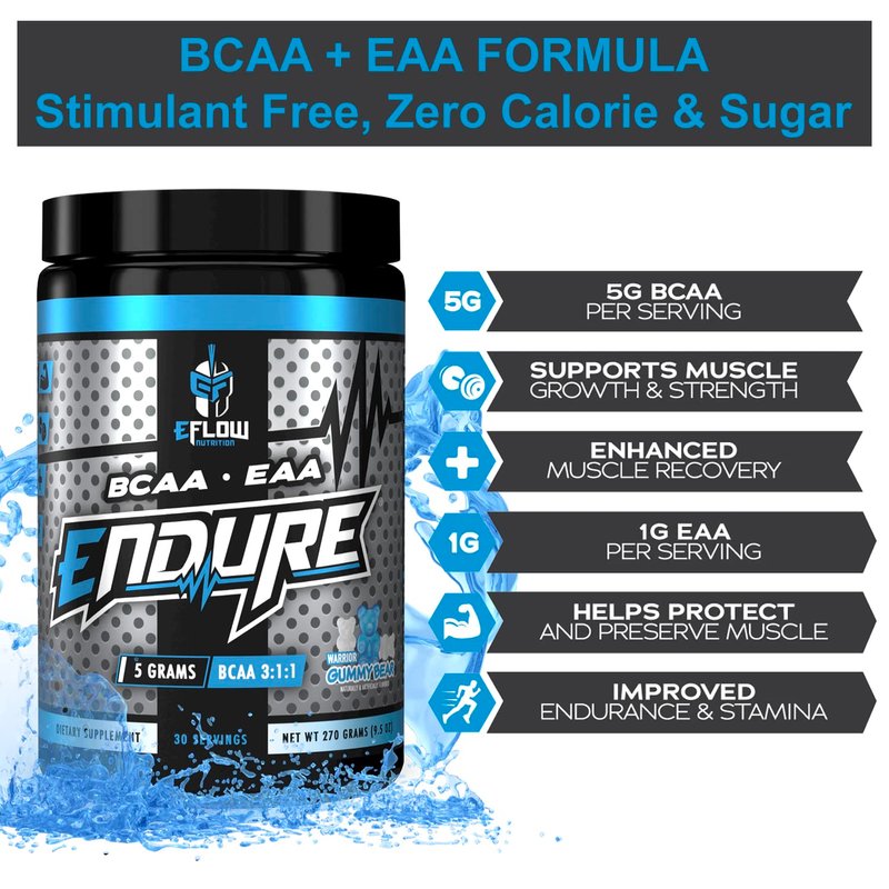 eFlow Nutrition Endure BCAA Plus EAA - Essential Amino Acids Electrolyte Powder Intra Workout - Improve Energy, Recovery and Performance - Warrior Gummy Bear(30 Servings)