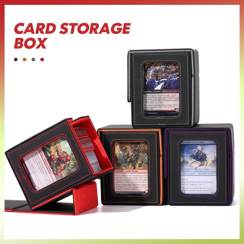 - Well-Designed: Patented with a side window, allowing players to easily distinguish their decks. Great for card collectors to display their cards. This card deck box can lie flat on the table at a good angle for easy access to cards.