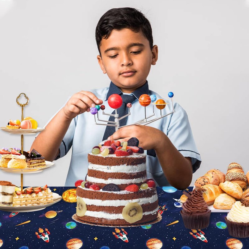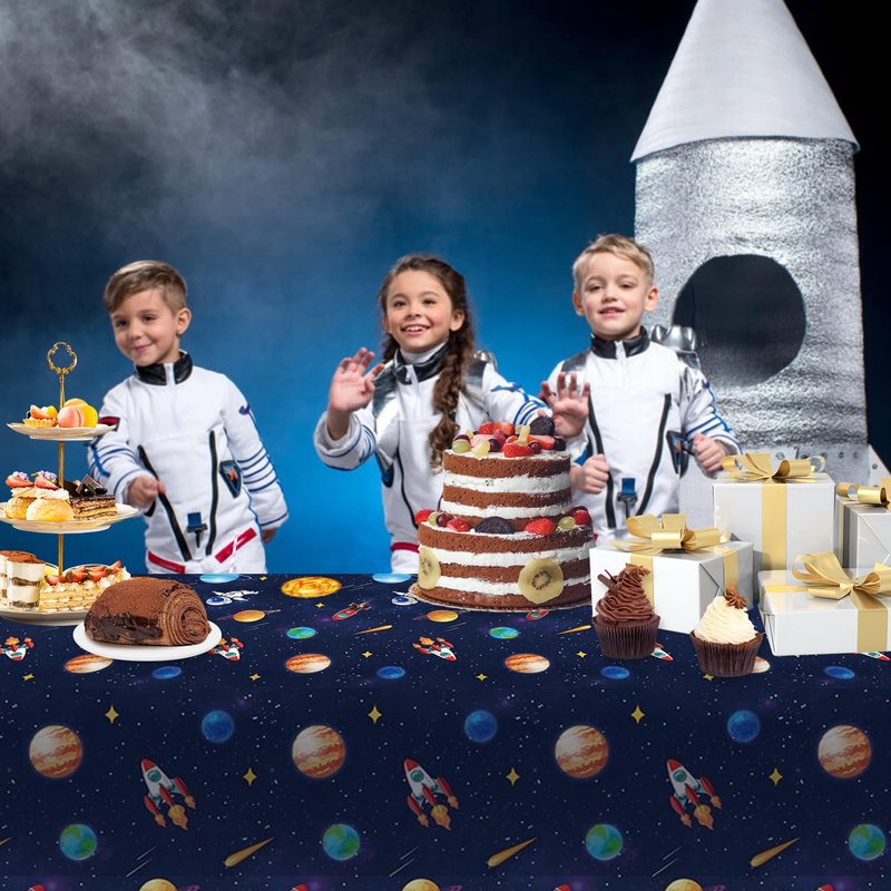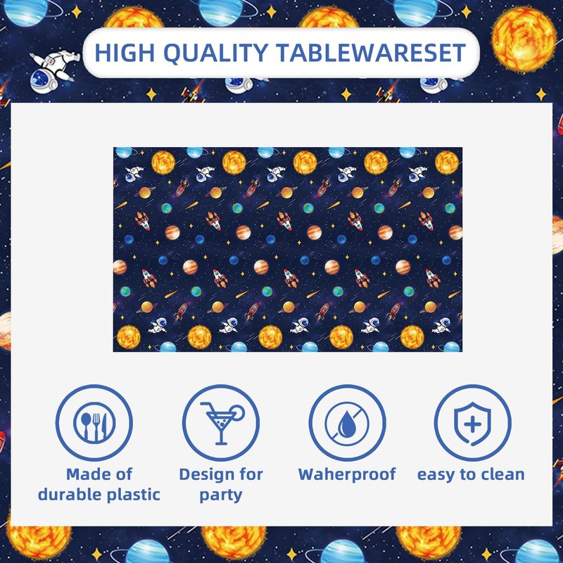 use: Suitable for children's birthday parties, game schools, classroom parties, retirement,solar system,graduation party,newborn birthdays, baby showers. The package includes: 2 pack Space of disposable plastic tablecloth size: 87 x 51 inches shape: rectangle prompt: One-time use, don't worry about cleaning after the party, just spend more time enjoying happy time! note: There will be a little chromatic aberration between the picture and the real object due to the different light or display of the photo.