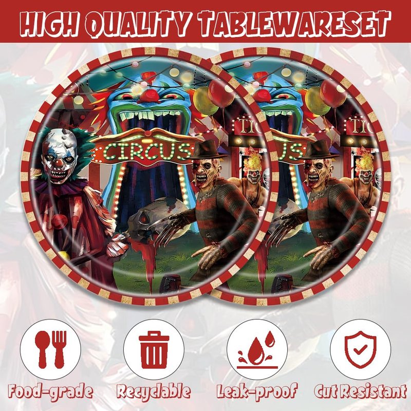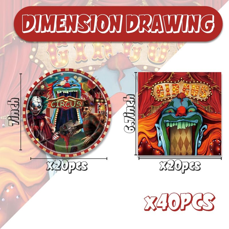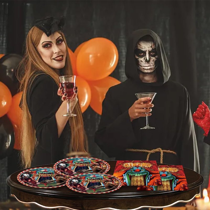 Egami halloween Party Supplies,include 20 dessert plate, 20 Napkin,Used for Horror Circus Party Decoration (Halloween Carnival)