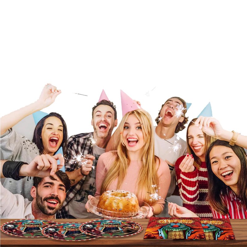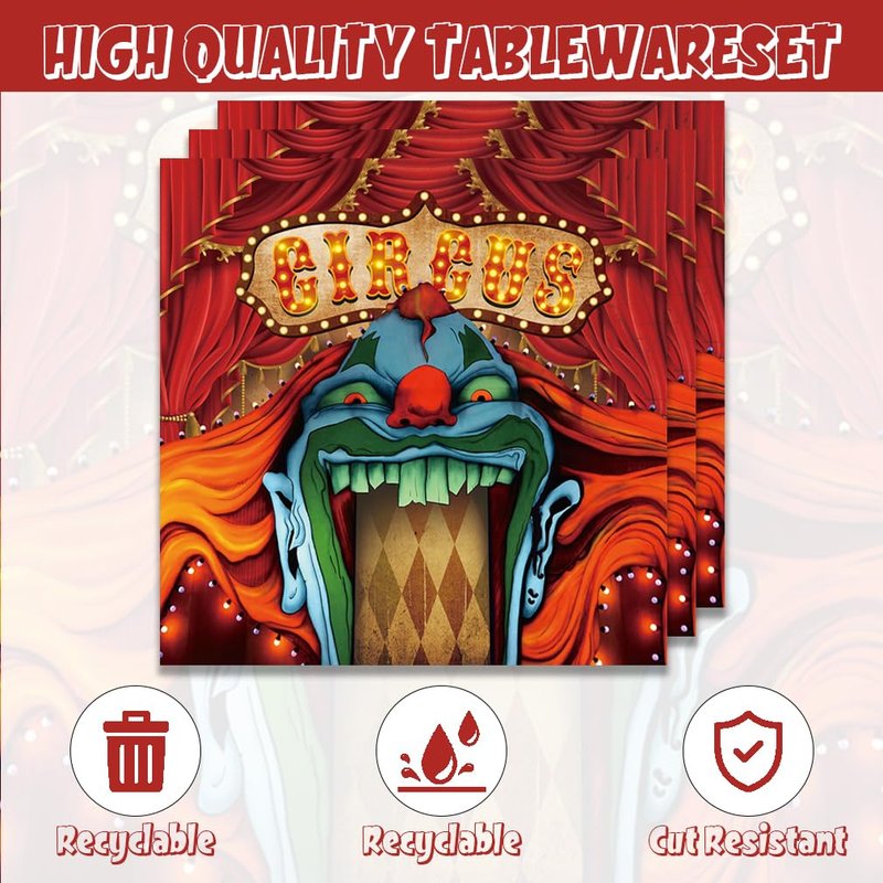 - Quality and design: Design: We use Horror Clown theme design to let you get different compliments at the party. Quality: We use strict food-grade paper materials, strict quality control, high-quality napkins are soft, strong in water absorption.