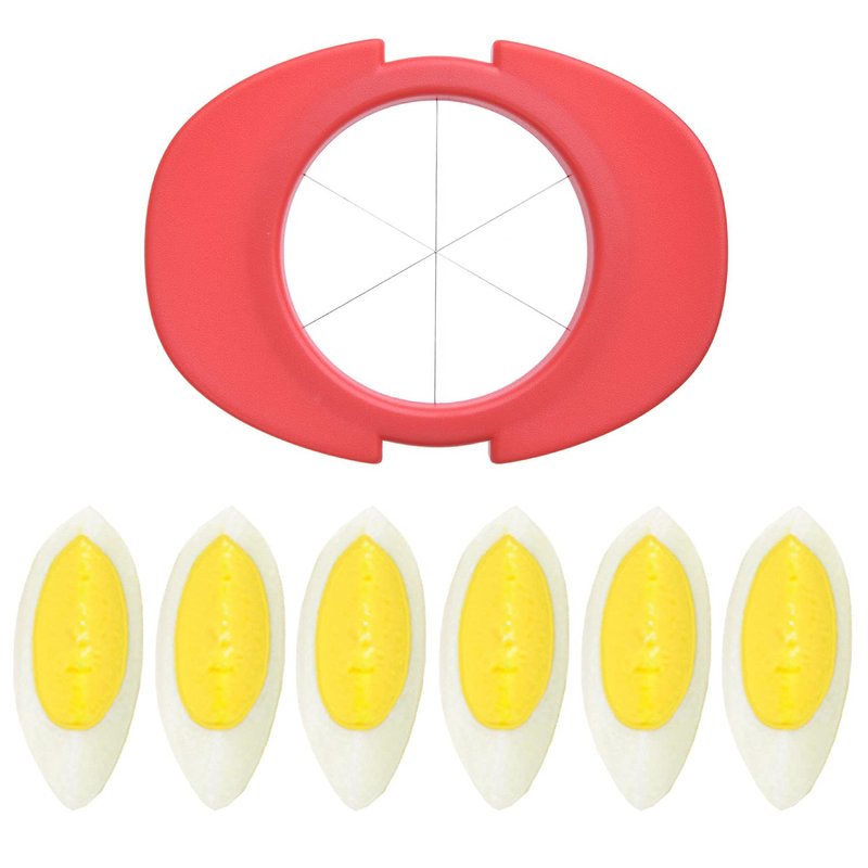 - MORE POSSIBILITIES >> With a regular egg slicer you can only cut boiled eggs into slices. This set of 3 egg slicers allows you to cut boiled eggs into thin slices, wedges and halves. The slicers can also be used to cut certain fruits, vegetables, dairy products or even soft cakes.