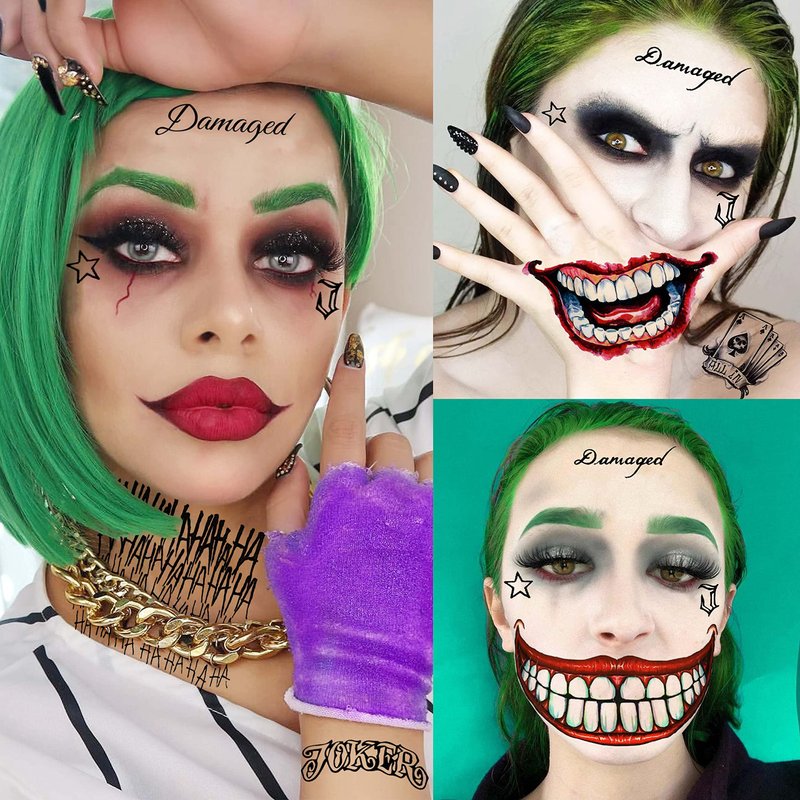 - 🍷No Pain To Have Bulk Realistic Joker Tattoos Sets🍸 Fake Tattoos For Women Looks Real and Cause No Pain And Won't Leave Any Scars. Even No Worry To Apply On Baby, Child, Toddler, Children, Teens, Teenagers, Lovers, Youth, Temporal Tattoos For Men Teens Tattoo Paper. Zombie Chucky Makeup kit set, Tatuajes Temporales Women Men Adult Kids autocolante.