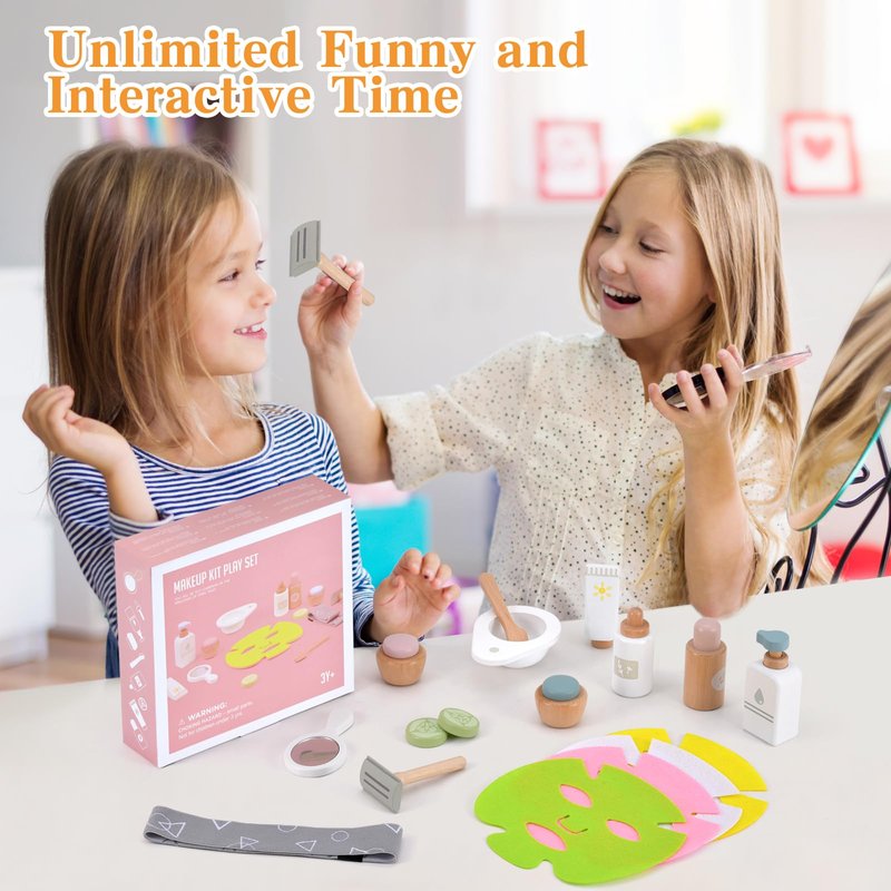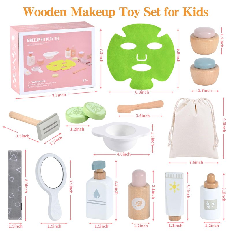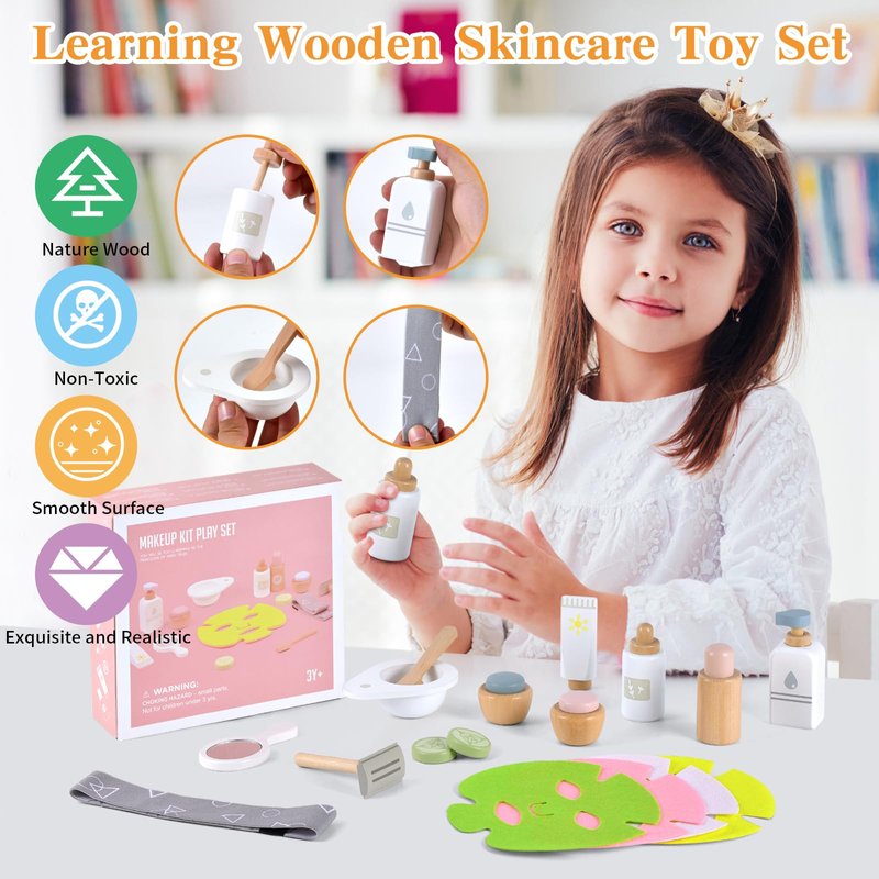 - Great Gift: This makeup toy set is a perfect gift for any occasion, such as party, pretend game, role play, class reward, holiday toy gift, Christmas gift and birthday gift for kids aged 3 4 5 6 7 8. the wooden skincare toy set for kids to explore their interests in fashion, beauty, and role-playing while learning and having fun.