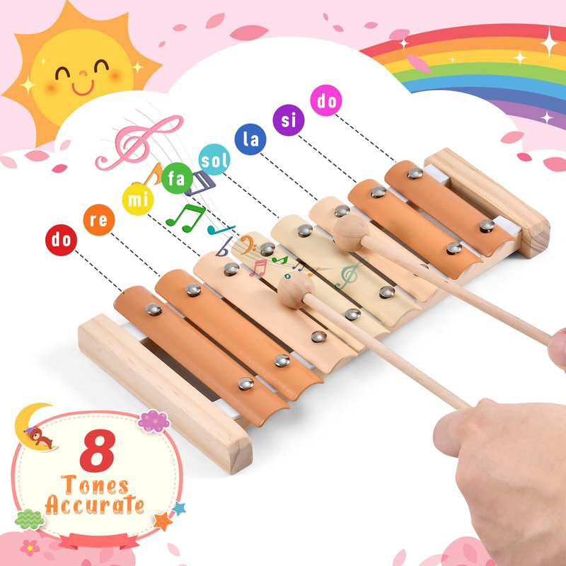 - Preschool Educational Musical Toys: Our baby xylophone for toddlers 1-3 are great for developing rhythm and musical skills. The instruments toy set are designed to inspire children's sense of sight, hearing, and touch. It will be helpful to cultivate the kids’ sensitivity of music and the percept of rhythm, improve the creativity and develop the kids’ interests. Our 8-note xylophone set is a perfect addition to any Montessori toy collection and will help your kids create magical sounds.