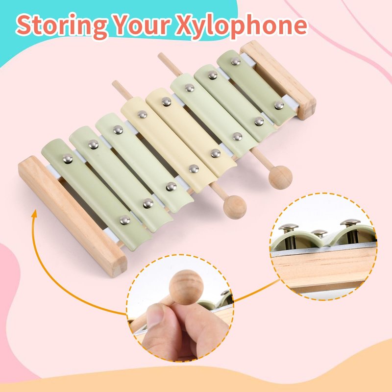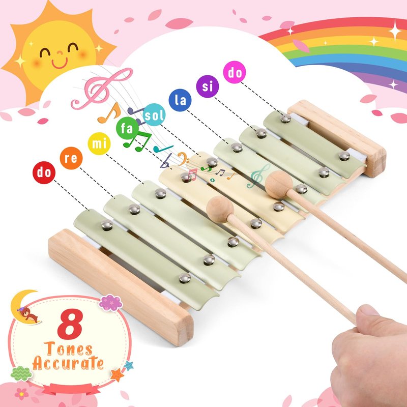 - Preschool Educational Musical Toys: Our baby xylophone for toddlers 1-3 are great for developing rhythm and musical skills. The instruments toy set are designed to inspire children's sense of sight, hearing, and touch. It will be helpful to cultivate the kids’ sensitivity of music and the percept of rhythm, improve the creativity and develop the kids’ interests. Our 8-note xylophone set is a perfect addition to any Montessori toy collection and will help your kids create magical sounds.